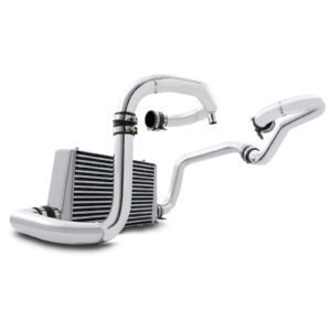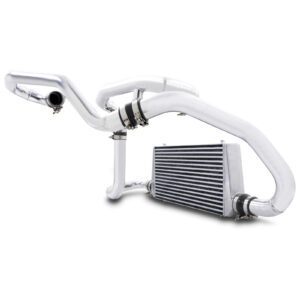 Fitting a front mount intercooler is an excellent way of safely increasing your engine’s power output. This is as a result of reducing the temperature of the air entering the engine, creating a denser charge. The standard Subaru top mount intercooler is a small unit mounted above the engine. Replacing it with a much larger, front mounted item means that much more cooling is on offer for the hot air trying to enter the engine. The cooler the air, the more power you will have on tap.