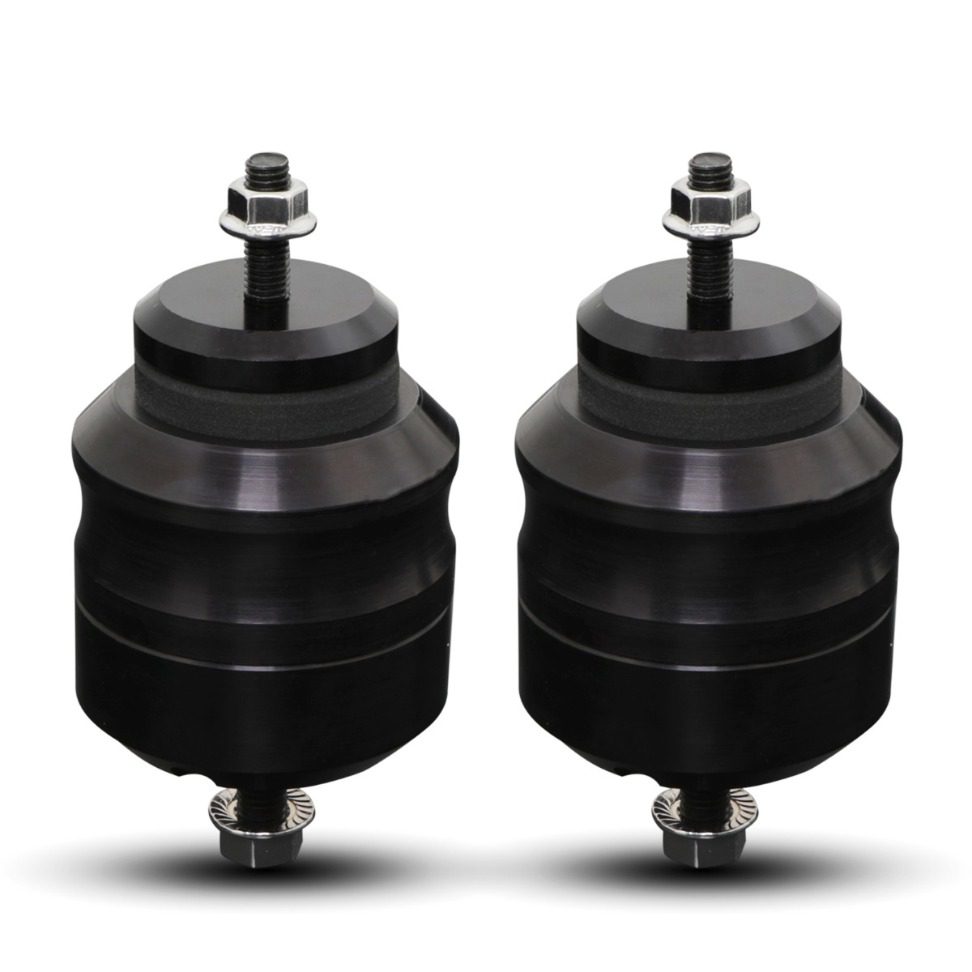 Enhancing the appearance of any engine bay, the mount bodies are manufactured from aircraft grade 6061-T6 aluminum anodized black, and are complemented by stiff poly bushings.
