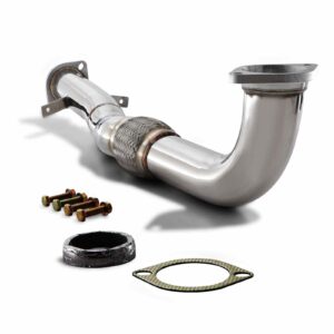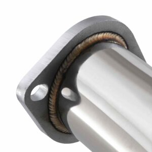 Our Mitsubishi Evo 7 8 9 Downpipe replaces the standard restrictive downpipe with a stainless steel, 3″ one-piece item that bolts directly to either the standard or an aftermarket turbo elbow. Increasing the bore of the downpipe allows the exhaust gasses to flow much more freely, increasing the power output of the engine and improving throttle response and turbo spool up time.