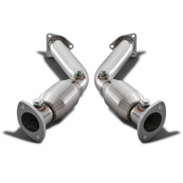 Our Sports Cat Downpipes compatible with the Nissan 350Z replace the standard restrictive catalytic converters with two free flowing sports cats. Replacing the standard restrictive catalytic converters with sports cats allows the exhaust gasses to flow much more freely, increasing the power output of the engine and improving throttle response.