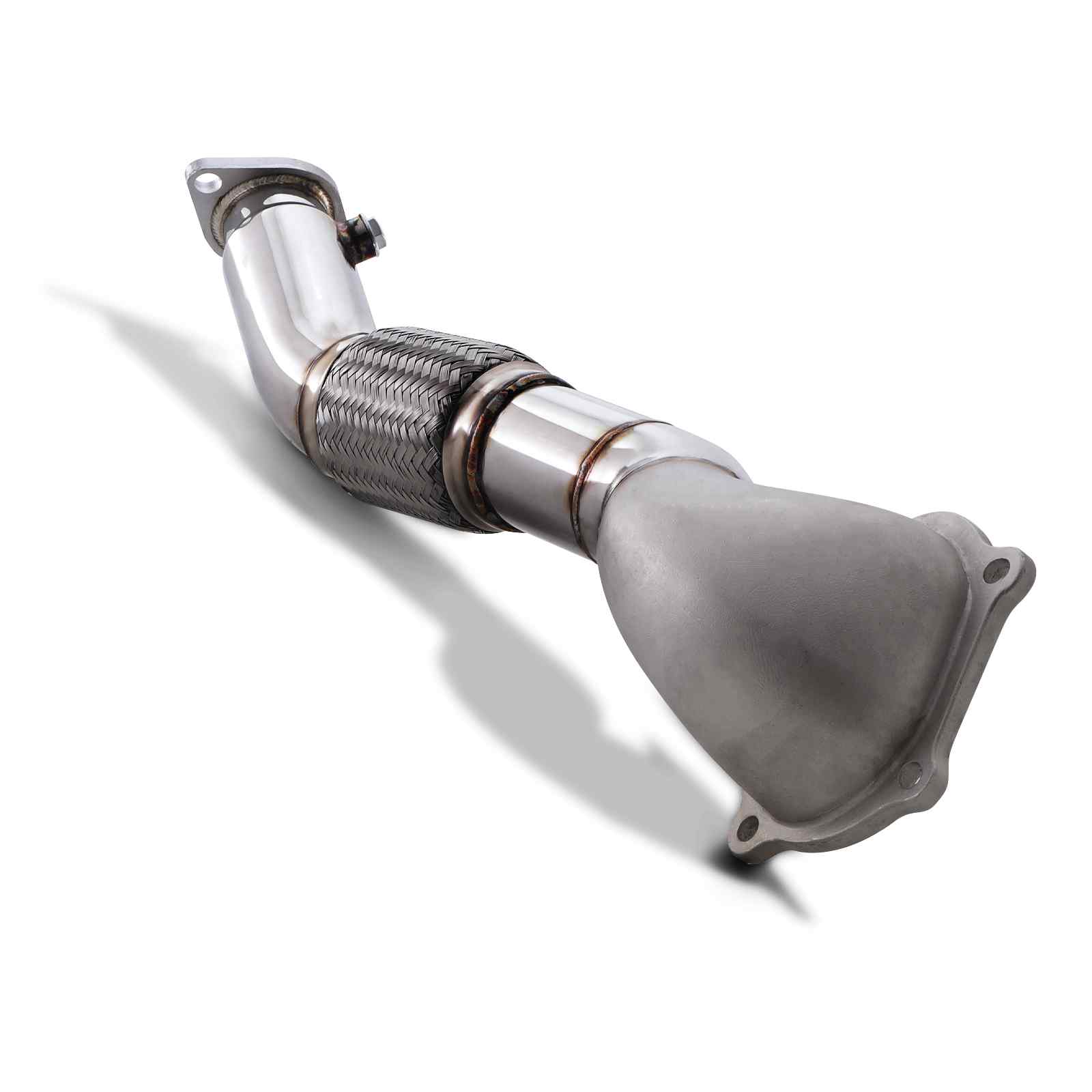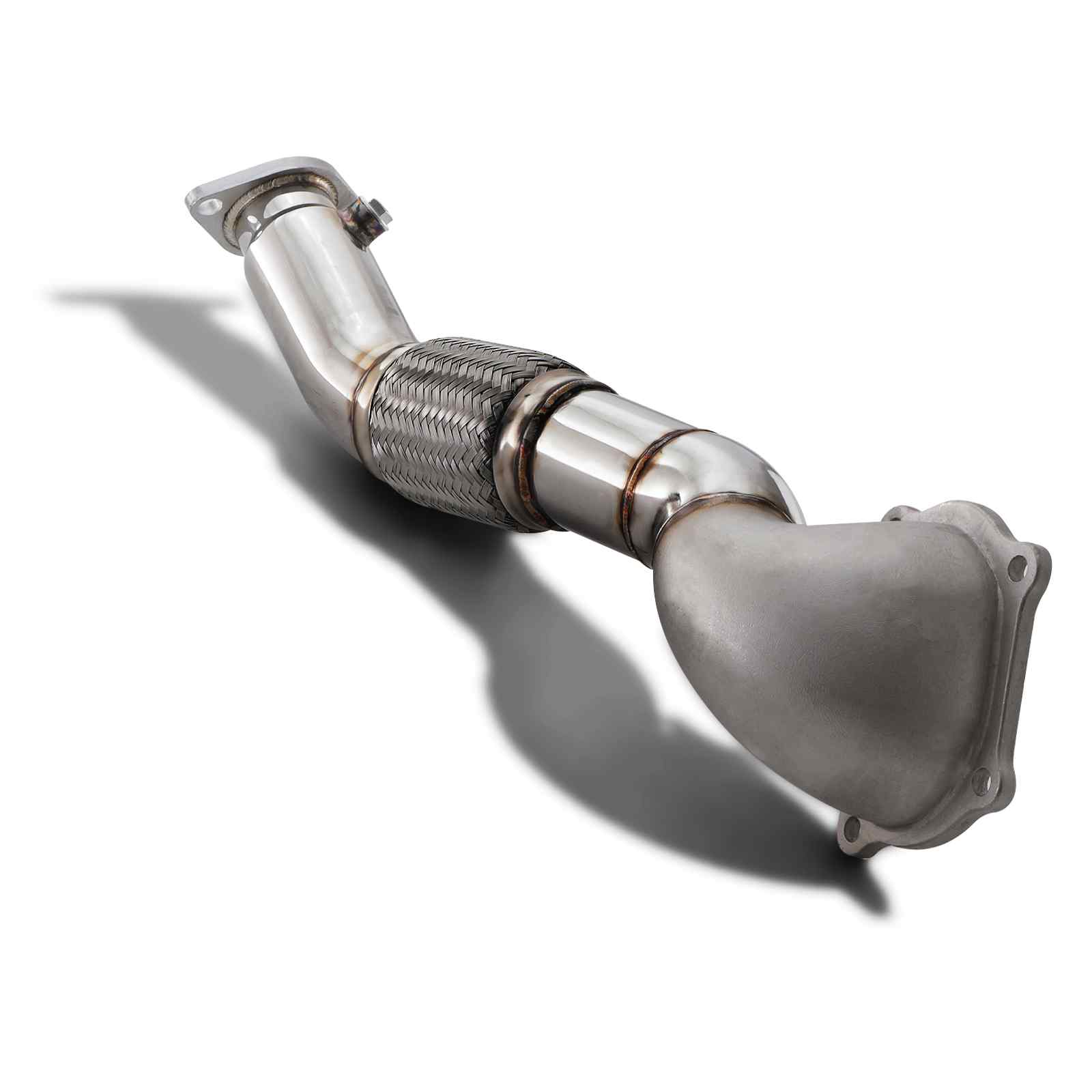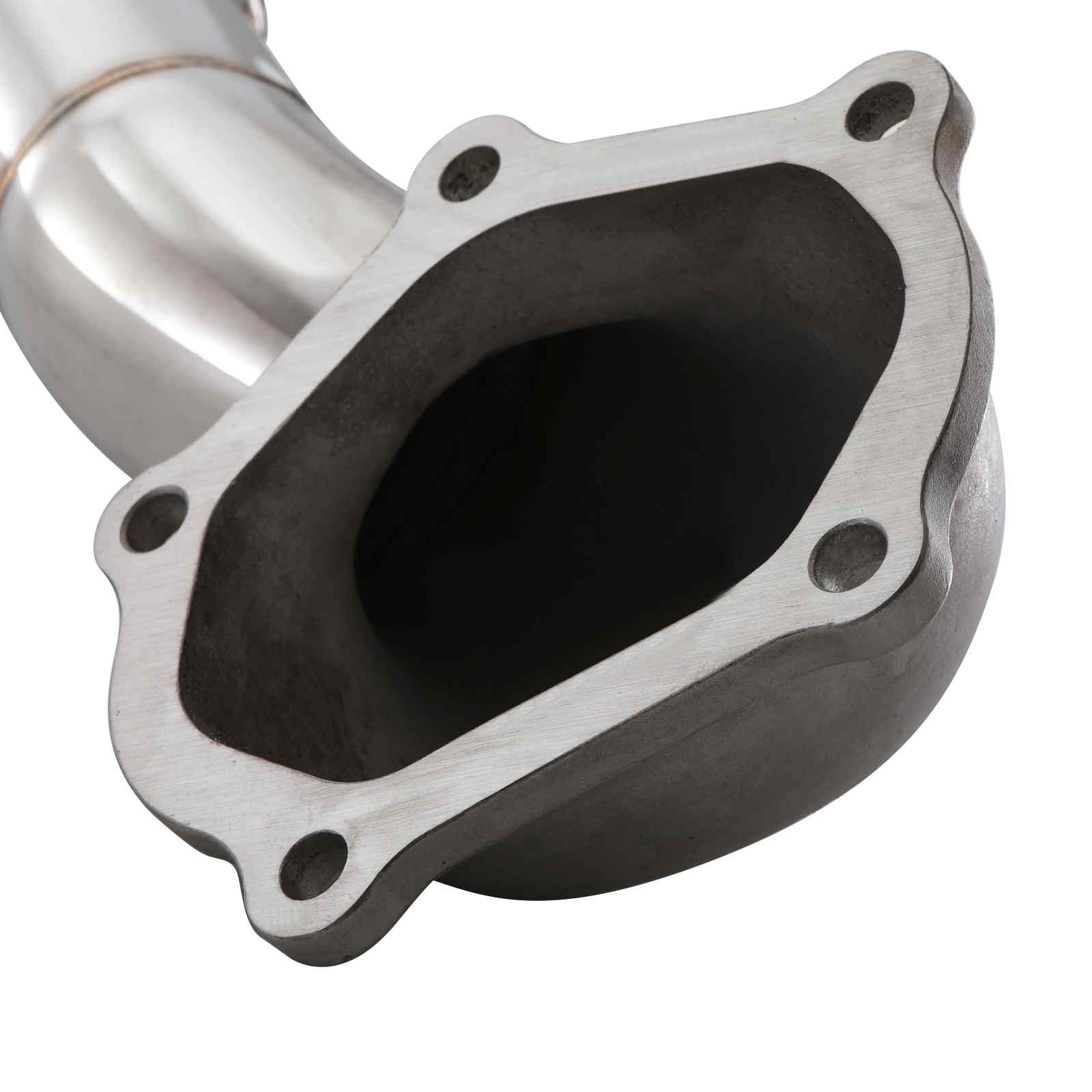 Our Mitsubishi Evo 10 Turbo Elbow Downpipe replaces the standard restrictive downpipe and turbo elbow with a stainless steel, high flow one-piece item that bolts directly to the standard turbo. Replacing the restrictive OEM pipes allows the exhaust gasses to exit the turbo faster and flow much more freely, increasing the power output of the engine; and reducing turbo lag.